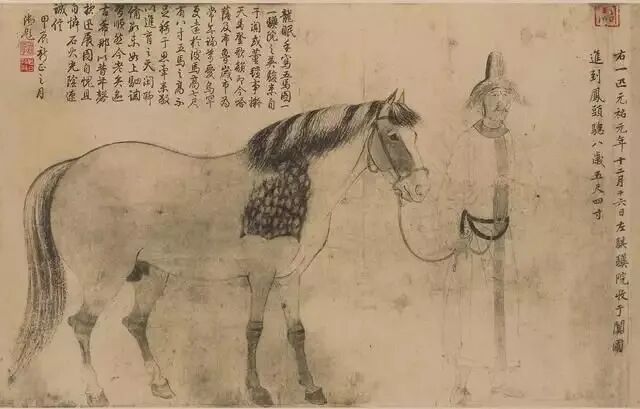 澄心堂紙不僅用于書法,也用于繪畫。據(jù)記載北宋畫家李公麟作畫不喜歡設(shè)色,多用白描,用的也是澄心堂紙。根據(jù)明代大收藏家項元汴考證,李公麟的傳世名作《五馬圖》用的就是澄心堂紙。